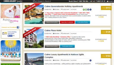 Cairns Holiday Specialists have a range of Accommodation and Tour Websites in the Far North Queensland Area. These sites all have the same identity creating a smooth transition for the visitor to gain information on the areas best accommodation, region guide and tours with lists of things to do and general info for the perfect tropical North Queensland Getaway. The Brief was to integrate all the sites maintaining the same visual look and feel of each site so the User Experience was the same no matter what Geographical location they were looking at.
